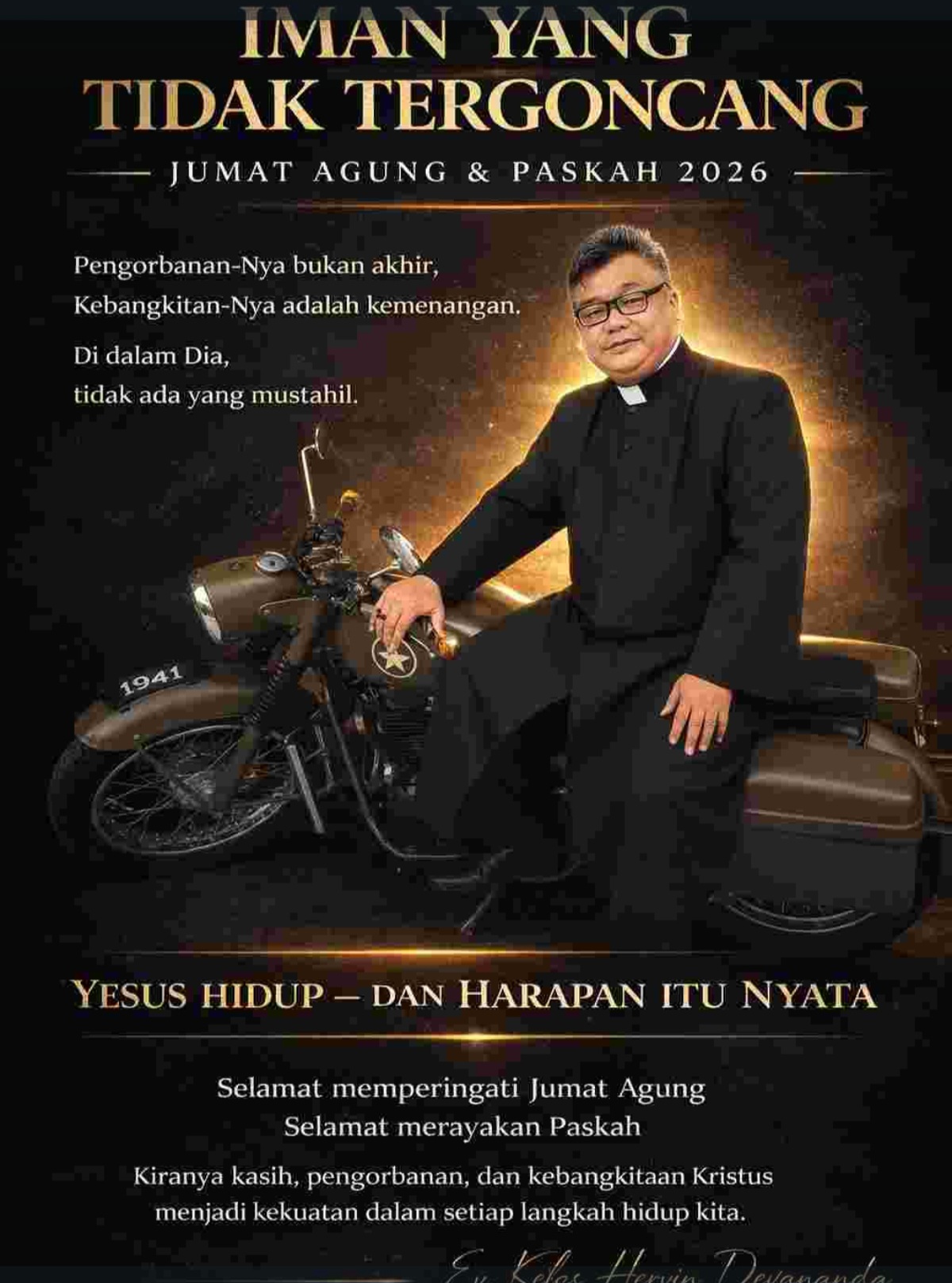 “Selamat memperingati Jumat Agung dan selamat menyambut Paskah 2026. Kiranya kita tidak hanya percaya, tetapi benar-benar hidup dalam kuasa kebangkitan Kristus. Tuhan Yesus memberkati.”
