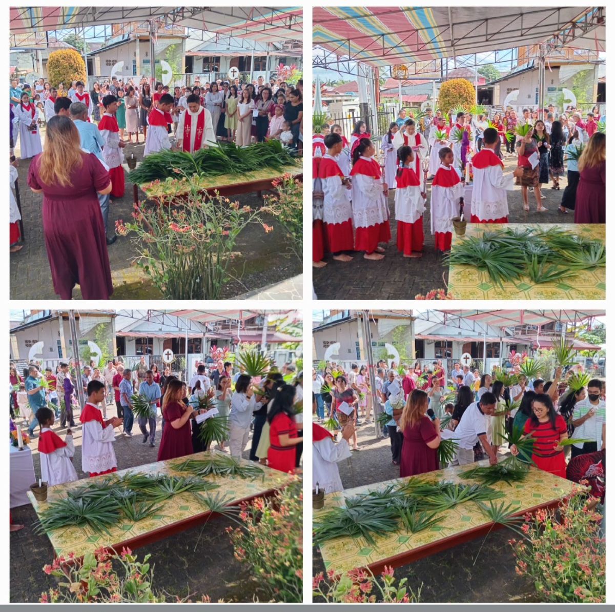 Sulut, Minut ,Bentarapatrolinusantara.com.Umat katholik Stasi Ignatius De Loyola Paroki Santa Ursula,Watutumou Kab Minut, Ke Uskupan Manado Sulawesi Utara melaksanakan minggu Palma minggu 29/3-26, di gerja stasi St Ignatius De Loyola Koltem.